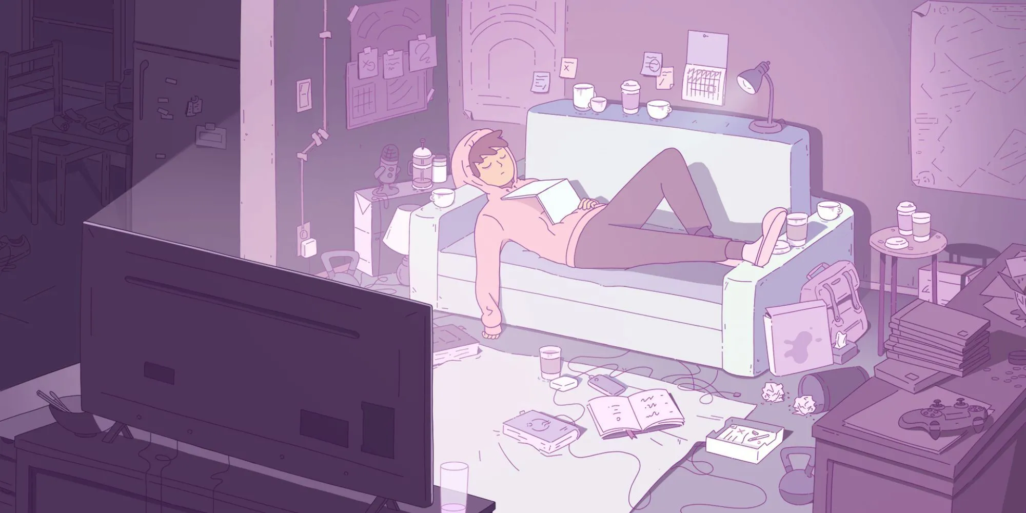 Hình ảnh một nhân vật đang ngủ trên ghế sofa trong game Melatonin